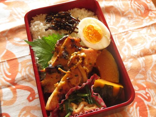本日 鮭のみそマヨネギ焼き ほうれん草と湯葉のごまあえ かぼちゃ煮 ゆでたまご生鮭がお買い得でしたのでみそマヨ焼きに。 文字通り味噌とマヨとねぎとみりんを混ぜ合わせただけのたれにしめじをちょっと乗っけてグリルで焼きます。 味噌が焦げ易いので弱火…