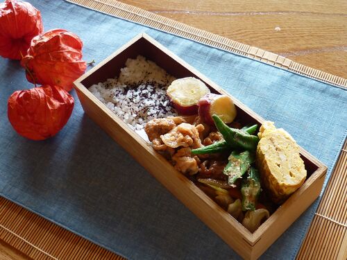 本日 豚こま生姜焼き 野菜炒め たまねぎ きゃべつ にんじん おくらおかかあえ だしまき サツマイモレモン煮 いつも私、主人、78歳の会長のお弁当を3つ作っていますが、その78歳の会長はおそろしくタフな老人なので、若者もついていくのに必死なのです。医者…