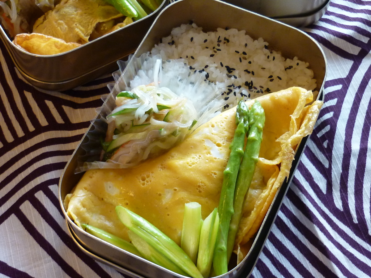 ものすごいシンプルなお弁当なのですが、ミートオムレツの中身に時間をとられ