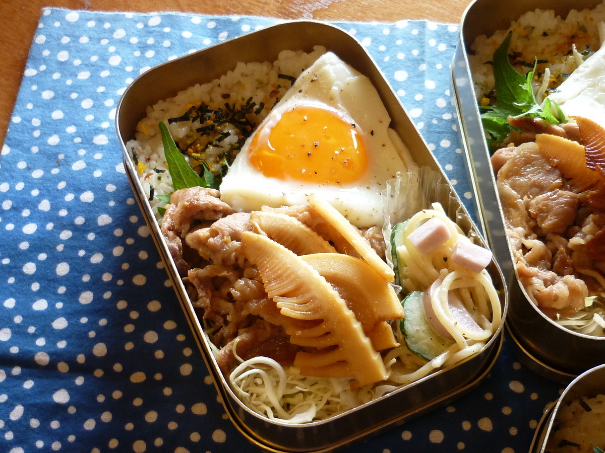 たけのこメニューも使い果たして、とうとう生姜焼きの隅っこで豚肉と一緒に焼くという知恵を使わない方向へ行ってしまいました。
